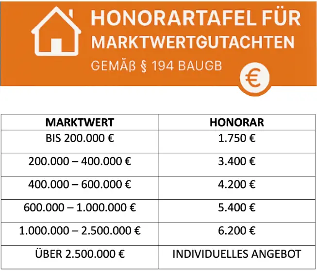 +++Das Honorar für ein Marktwertgutachten bzw. Vollgutachten gemäß § 194 BauGB ist umso günstiger, je höher der Marktwert ist.+++
